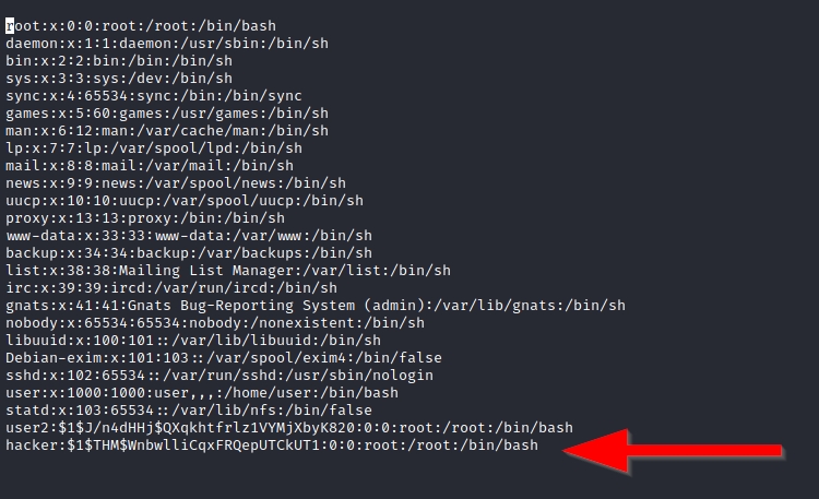 We will then add this password with a username to the /etc/passwd file.